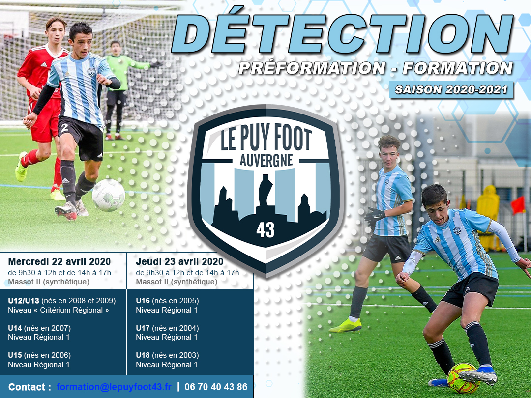 En vue de la prochaine saison sportive (2020-2021), Le Puy Foot 43 Auvergne organise deux journées de détection pour les catégories U12 à U18, tous postes confondus, sur le terrain en synthétique du stade Massot.