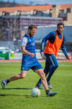 J-11 pour les joueurs de Roland Vieira, toujours en lice en coupe de France après leur bel exploit en 16e de finale face au FC Lorient (Ligue 1, qualification 1 à 0). En 8e de finale, les Ponots se rendront à Rumilly pour y affronter le GFA Rumilly Vallières, un club de même niveau (National 2). Coup d’envoi mercredi 7 avril 2021 à 16h45 (retransmis sur Eurosport 2 et Eurosport Player). Séances intensives, matchs amicaux, les coéquipiers de Loïc Dufau poursuivent leur préparation.