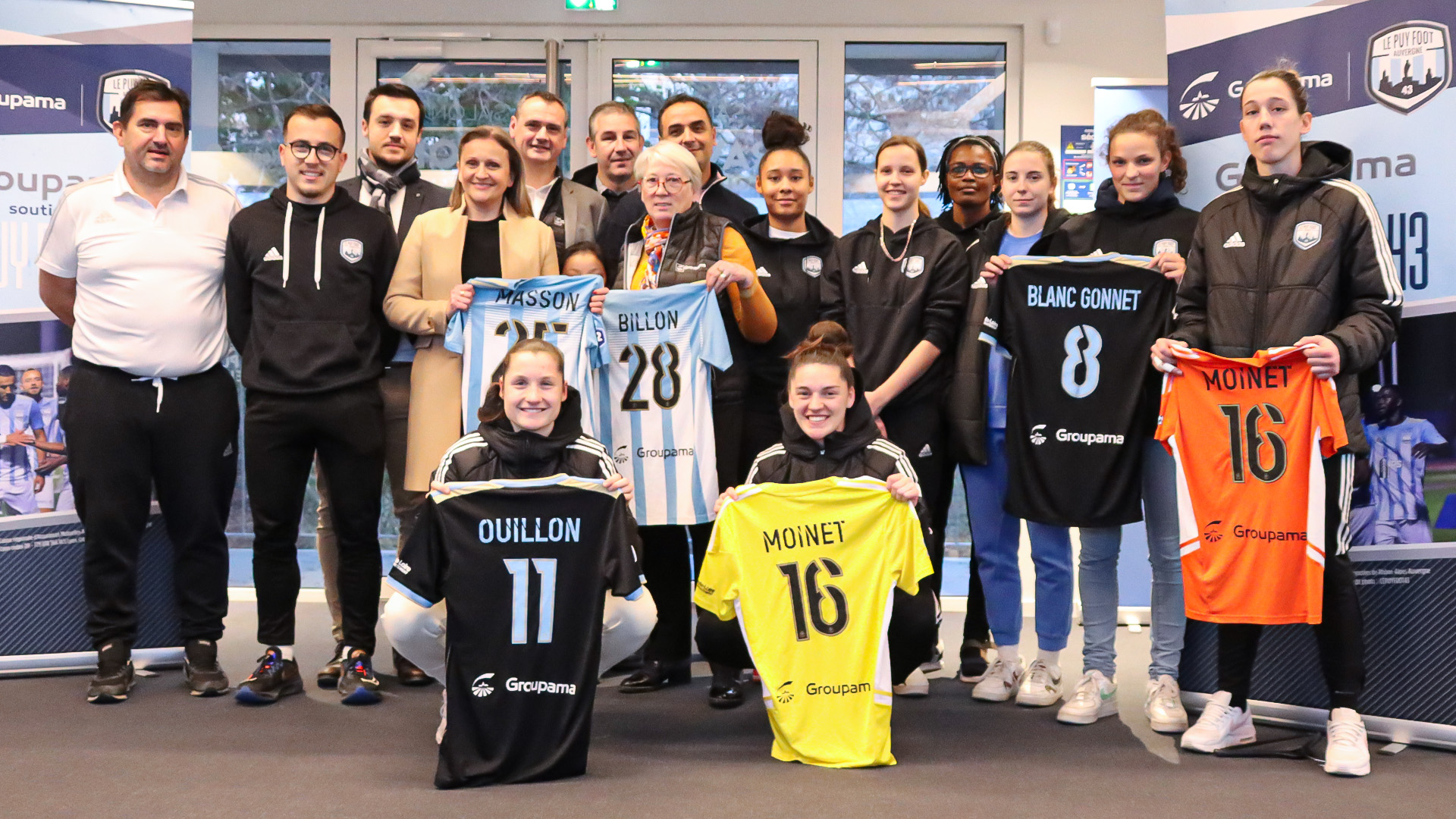 Le partenariat entre Le Puy Foot 43 et Groupama Rhône-Alpes Auvergne se poursuit. Ce jeudi 2 mars, le club recevait son partenaire dans les loges du Stade Massot afin de lui présenter les maillots de l’équipe D2 Féminine, floqués au dos du logo Groupama.