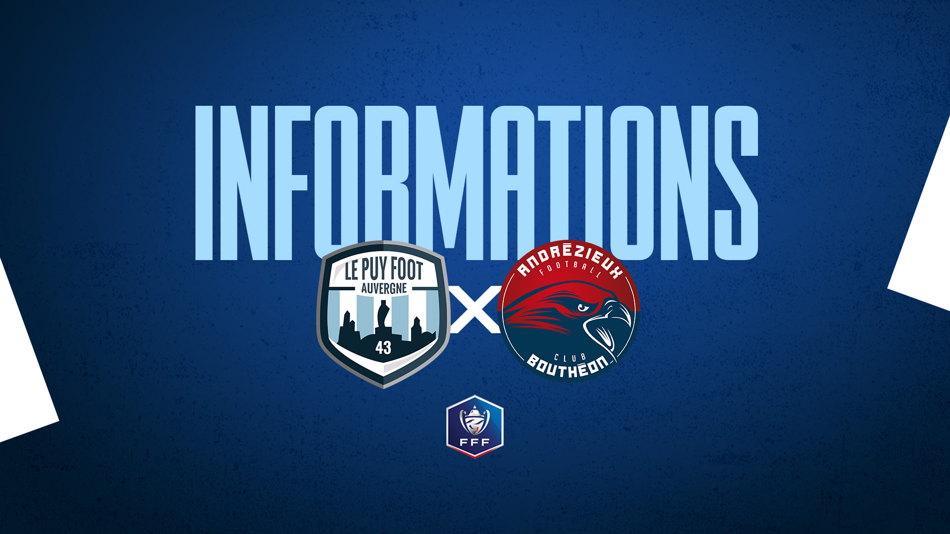 Quelques informations concernant le 7ème tour de la Coupe de France opposant le Puy Foot 43 à Andrézieux-Bouthéon FC ce vendredi 28 octobre à 20h au Stade Massot.