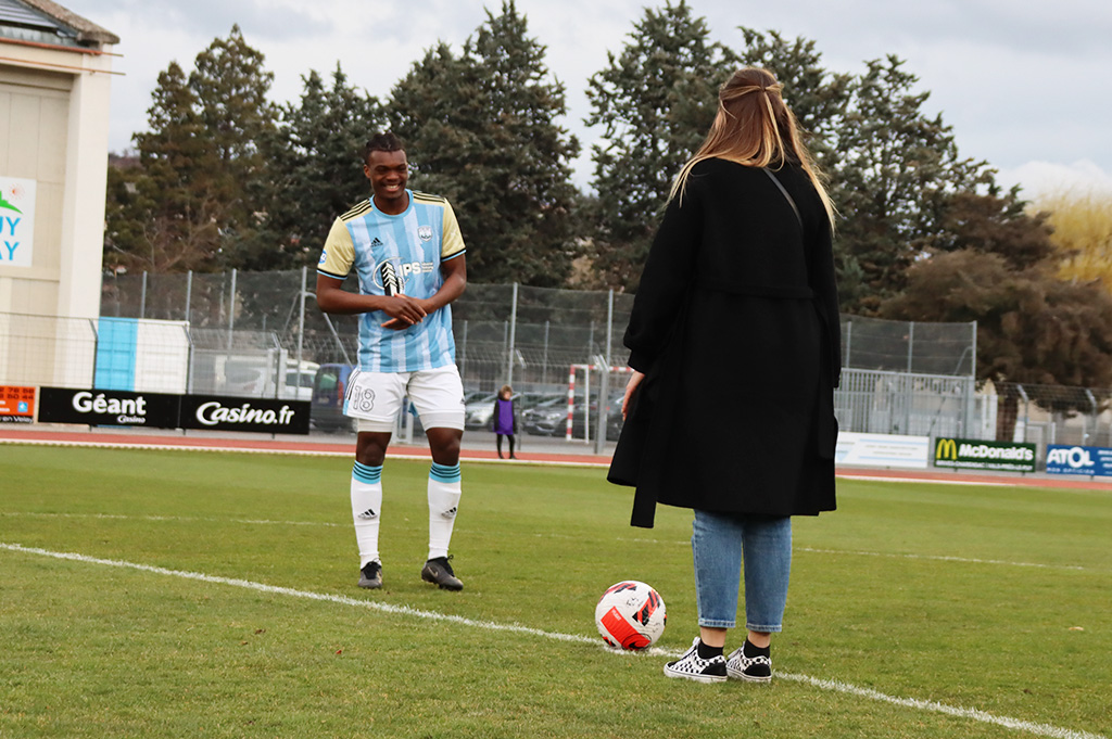 Carole Bonhomme, conseillère clientèle à la GMF au Puy-en-Velay a ainsi été invitée à rentrer sur la pelouse du Stade Massot juste avant le coup de sifflet de l’arbitre pour lancer la rencontre. 90 minutes plus tard, les ponots rentraient aux vestiaires avec la victoire et trois points supplémentaires au classement.