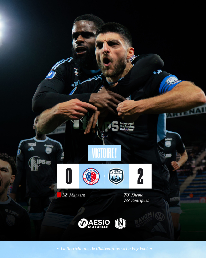 En déplacement à Châteauroux à l’occasion de la 19ème journée de National, Le Puy s’est imposé 2-0 dans Le Berri. Les Ciel & Blanc sont parvenus à faire la différence en seconde période.