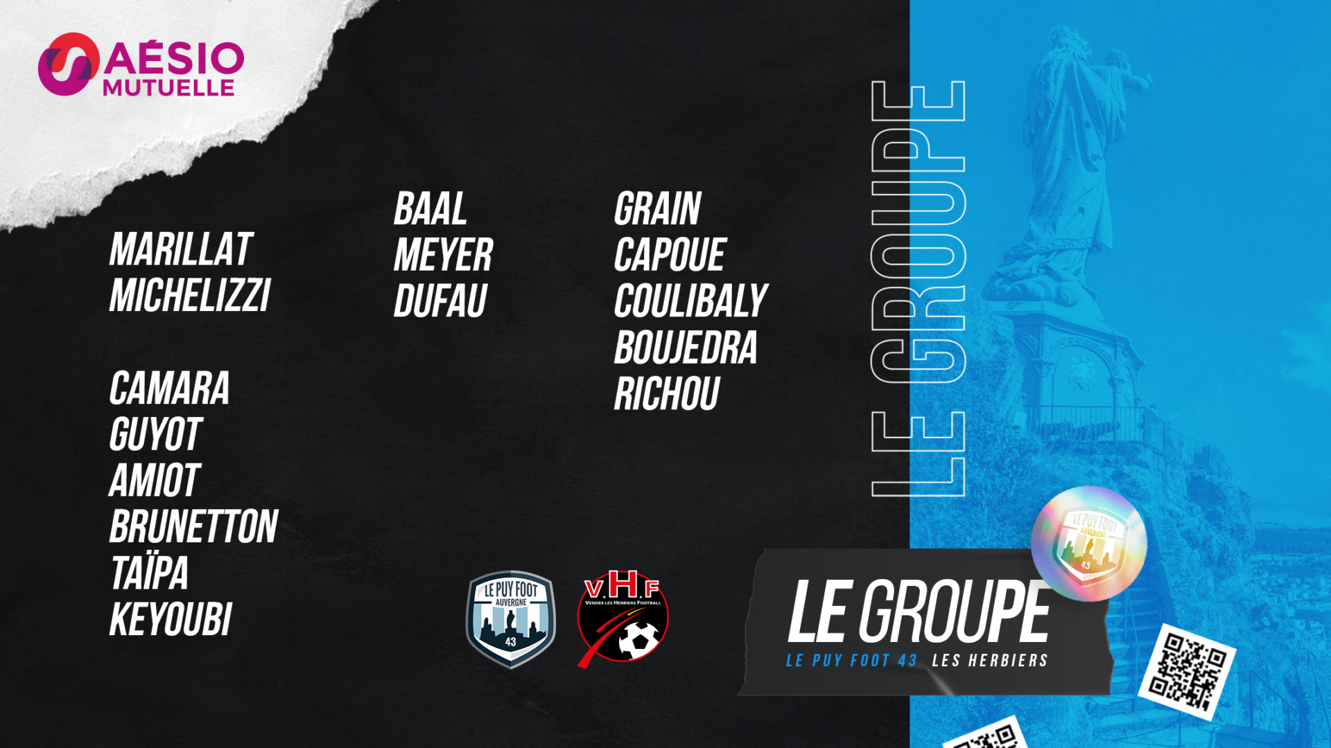 Le Puy Foot 43 reçoit Les Herbiers ce samedi 22 avril (18h) au Stade Massot à l’occasion de la 26ème journée de National 2. Découvrez le groupe sélectionné par le coach Roland Vieira à l’occasion de cette rencontre :