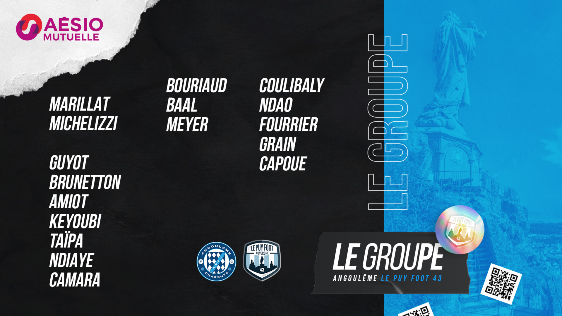 Le Puy Foot 43 se déplace à Angoulême à l’occasion de la 18ème journée de National 2. Le match se tiendra ce samedi 12 Février à 18h au Stade Lebon. Découvrez le groupe sélectionné par le coach Roland Vieira à l’occasion de cette rencontre :