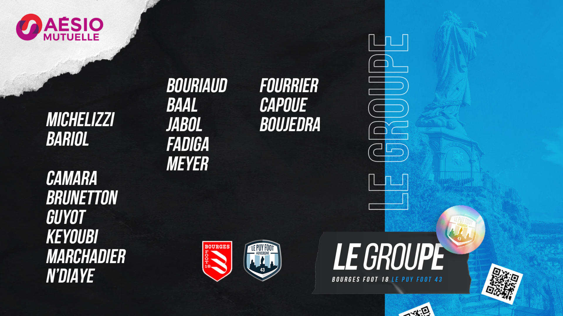 Le Puy Foot 43 se déplace chez Bourges Foot 18 (13ème) pour le compte de la 9ème journée de National 2. Le match se tiendra ce samedi 9 octobre à 18h. Découvrez le groupe sélectionné par le coach Roland Vieira à l’occasion de cette rencontre :