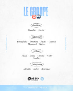 Défenseurs : Ismaïl Bouleghcha, Cheick Doumbia, Edson Seidou, Tyrone Sakho, Idris Mohamed, Emric Goumot.