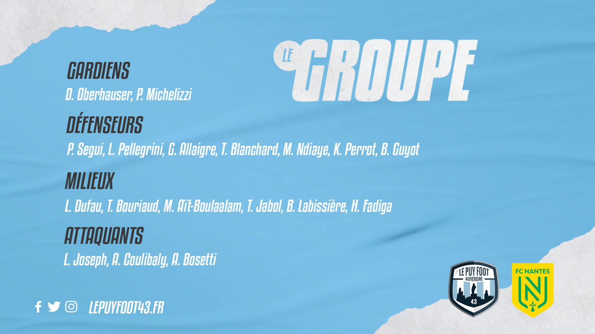 Samedi 27 février 2021, à 18h, au stade Massot : Le Puy Foot 43 Auvergne – FC Nantes B. Arbitre : Steven Llewellyn. Match à huis-clos.