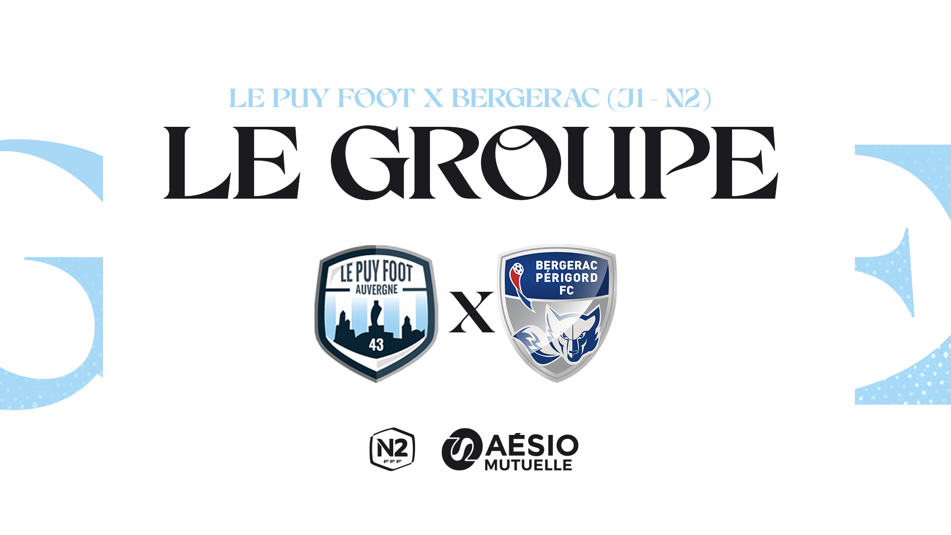 À l’occasion de la 1ère journée de National 2, Le Puy Foot reçoit Bergerac au Stade Massot. Retrouvez le groupe convoqué par le staff Ponot à l’occasion de cette rencontre.