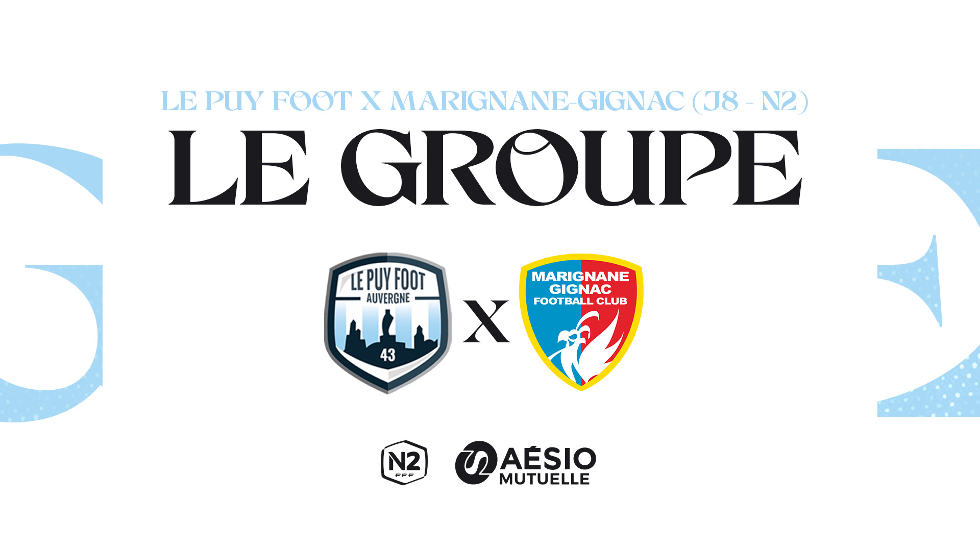 À l’occasion de la 8ème journée de National 2, Le Puy Foot reçoit Marignane-Gignac au Stade Massot. Retrouvez le groupe convoqué par le staff Ponot à l’occasion de cette rencontre.