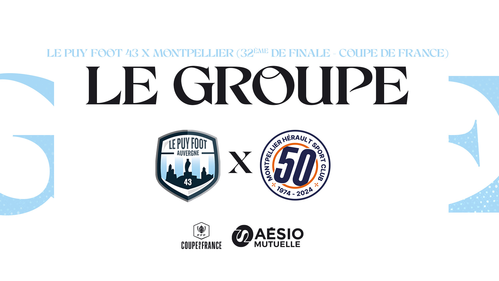 À l’occasion du 32ème de finale de la Coupe de France, Le Puy Foot reçoit Montpellier (L1) au Stade Massot. Découvrez le groupe convoqué par le staff Ponot à l’occasion de cette rencontre exceptionelle.