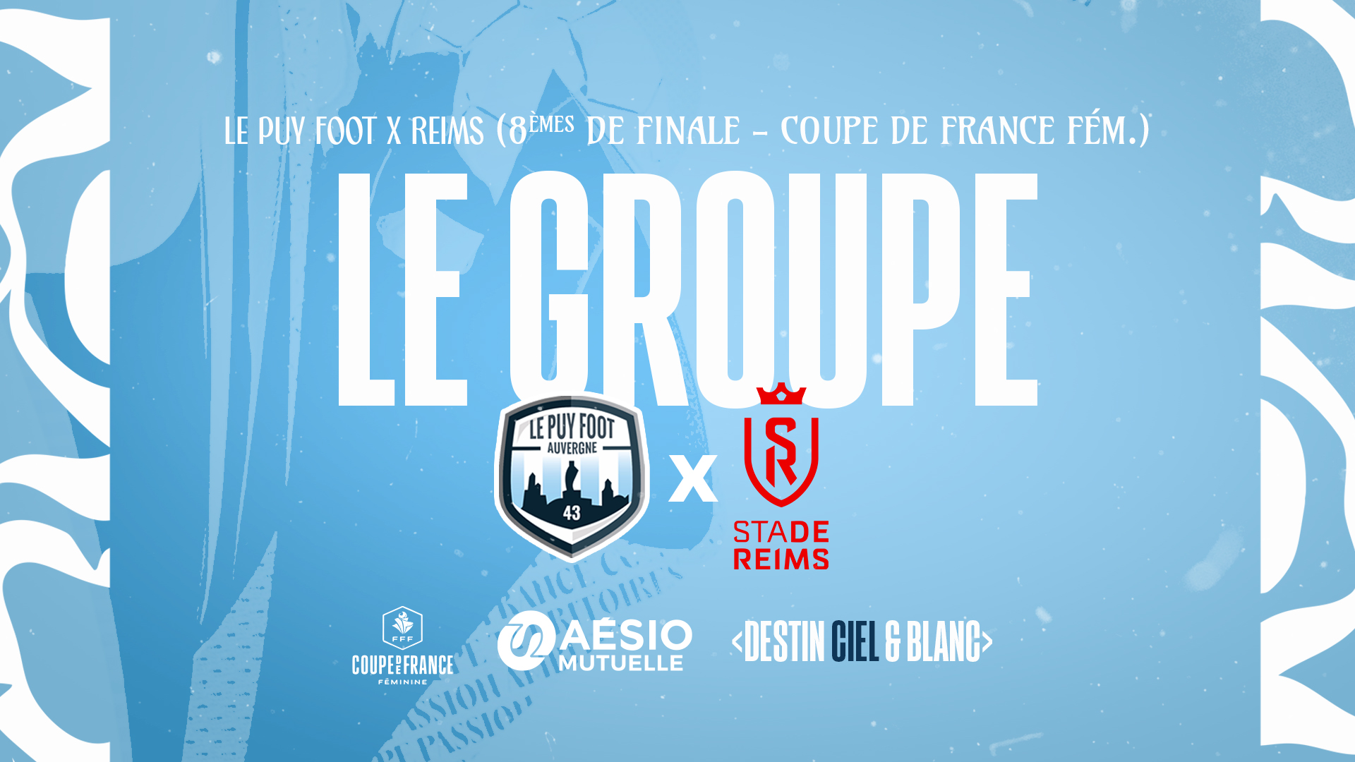À l’occasion du 8ème de finale de Coupe de France féminine, Le Puy Foot reçoit le Stade de Reims, équipe de D1 Arkema au Stade Massot. Découvrez le groupe convoqué par Pierre-Yves Thomas à cette occasion.