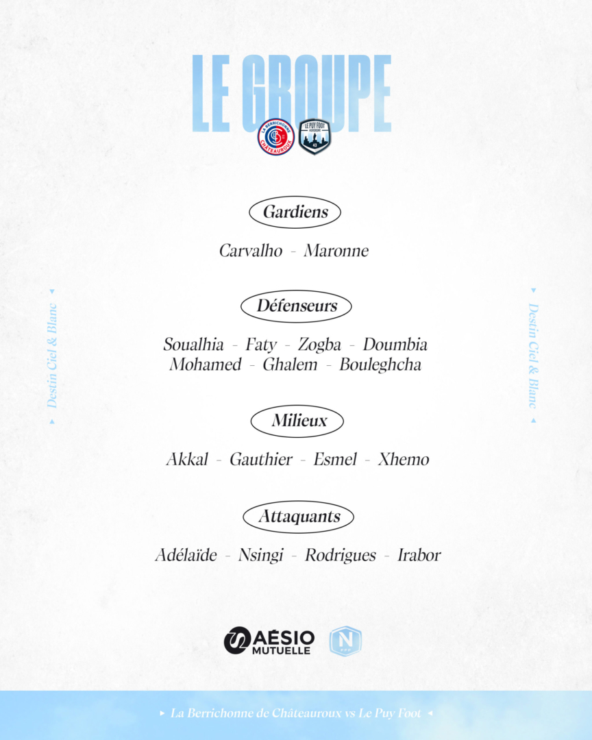 À l’occasion de la 19ème journée de National, Le Puy Foot se déplace à Châteauroux ce vendredi. Découvrez le groupe convoqué par le staff Ponot à l’occasion de cette rencontre.