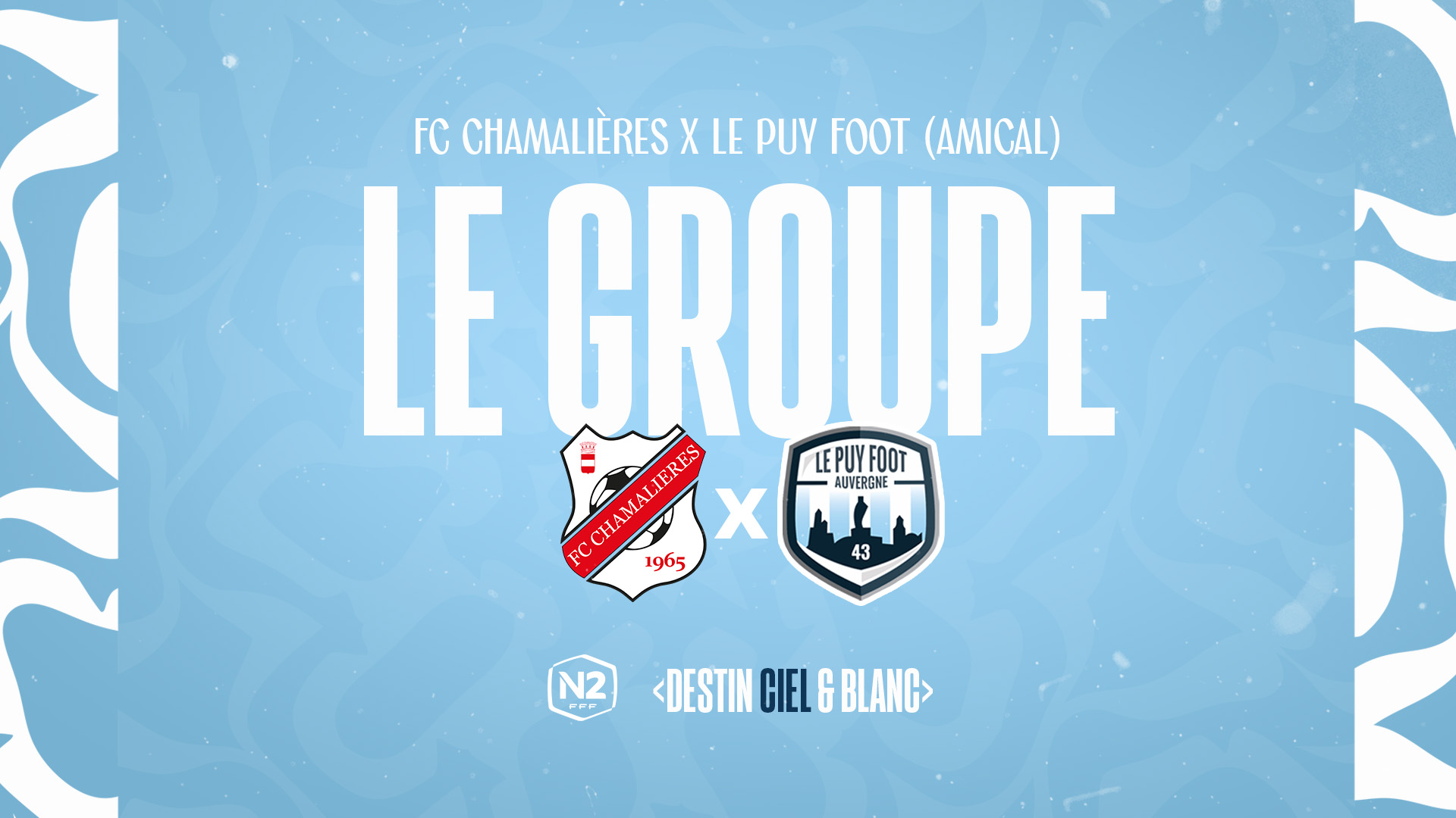 La pré-saison du Puy Foot 43 prend pour le moment une tournure positive avec une seule défaite (Villefranche), deux matchs nuls (Trélissac, Troyes) et deux victoires (Feurs, Alès). Ce samedi 12 août matin, les Ciel & Blanc seront au Cendre dans le département du Puy-de-Dôme pour affronter le FC Chamalières, équipe évoluant dans la même poule de N2. Découvrez le groupe composé par le staff ponot à l’occasion de cette rencontre.