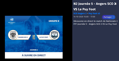 Mercredi 14 octobre, le match en retard de Nationale 2 (5e journée) de nos Ponots à Angers face à la réserve du SCO Angers sera diffusé en « live » à 15h sur la plateforme Fuchs Sports TV !