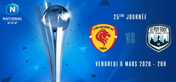 Cliquez sur l’image ou le lien ci-dessous pour regarder le match Lyon-Duchère – Le Puy Foot (coup d’envoi vendredi 6 mars à 20h) !