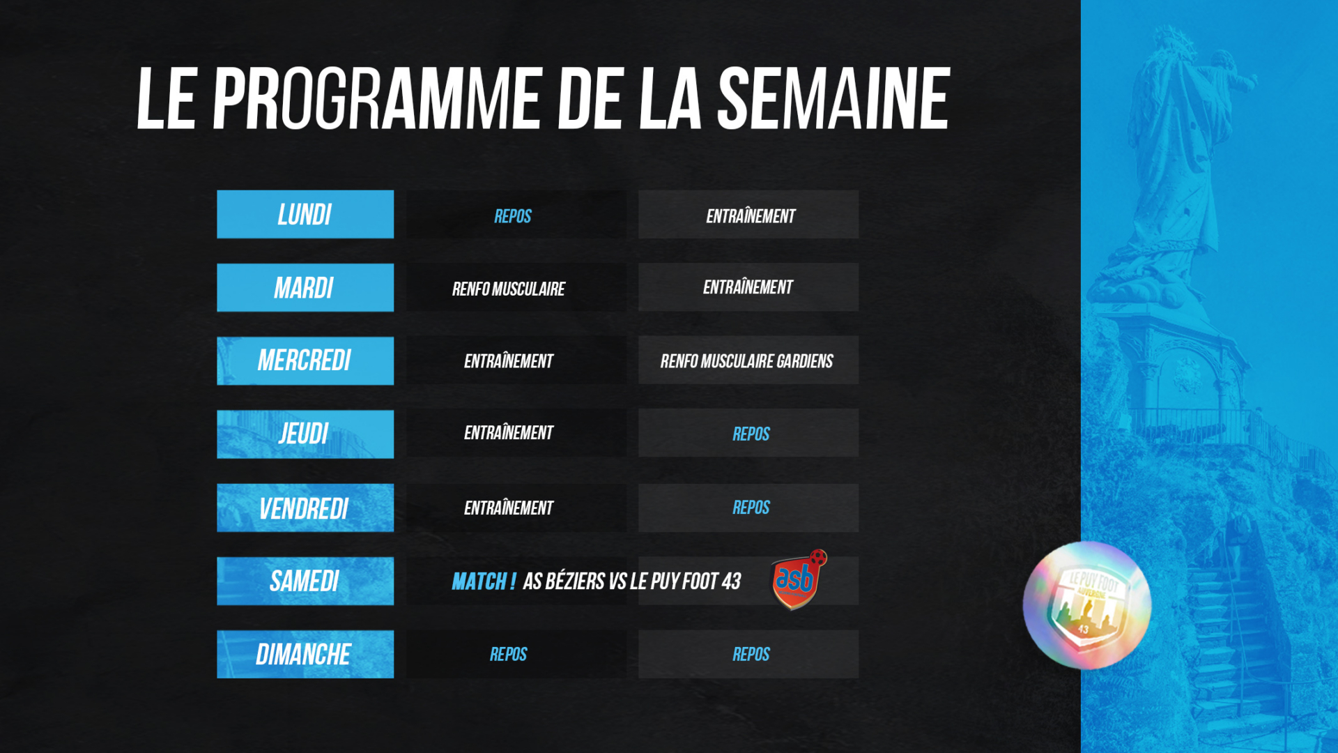 Mercredi 15 septembre : Entrainement collectif (10h) / Renforcement musculaire gardiens (11h30)