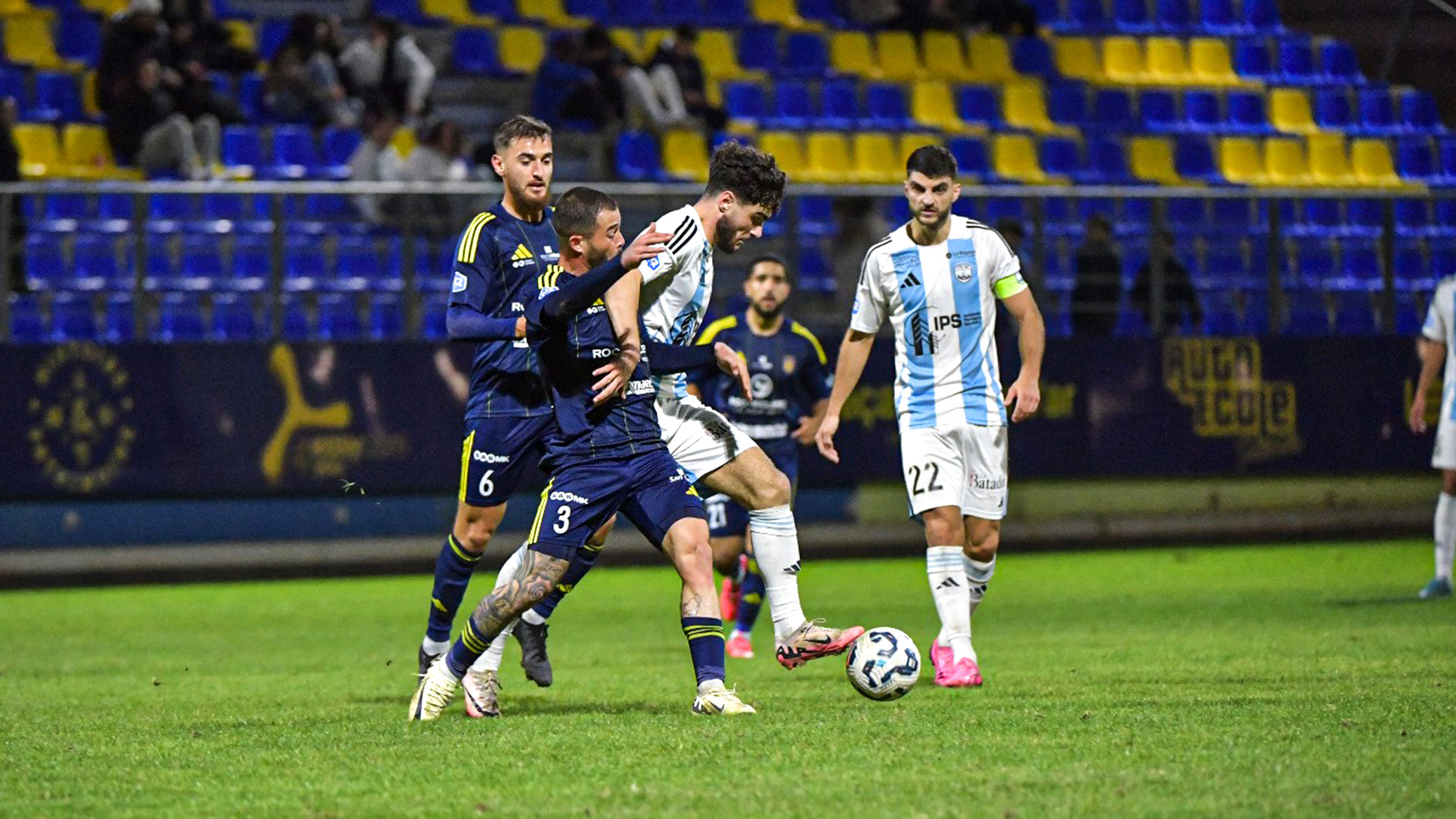 Stéphane Dief s’attendait à une forte adversité à Hyères, notre coach avait visé juste. Le Puy ramène un point du sud mais le score aurait pu chavirer de part et d’autre lors de cette rencontre. En première période, les locaux se créaient la première occasion à la 6ème minute de jeu. Alors que le ballon fuit toute la défense du Puy, Kouyaté était trop court pour reprendre le ballon devant les cages au second poteau de Matis Carvalho. Ce premier avertissement permettait au Puy de se mettre dans le bain. Deux minutes plus tard, Nicolas Pays remontait le camp Hyérois en solitaire mais ne trouvait pas le cadre en bout de course (8e). Plus tard, son compagnon d’attaque Davel Mayela avait lui aussi l’opportunité d’ouvrir le score mais sa tentative de lobe sur le portier varois terminait elle aussi à côté des cages. La rencontre était animée sur les deux fronts. À la 12ème minute de jeu, un attaquant de Hyères s’effondrait dans la surface, l’action semblait litigieuse mais l’arbitre signalait aux acteurs de poursuivre le jeu. Les locaux poussaient et trouvaient le chemin du but de la tête, heureusement hors jeu (15e). En fin de période, Le Puy s’en remettait à Matis Carvalho pour préserver le score. Le gardien du Puy remportait son duel face à El Farissi, lancé dans la surface.