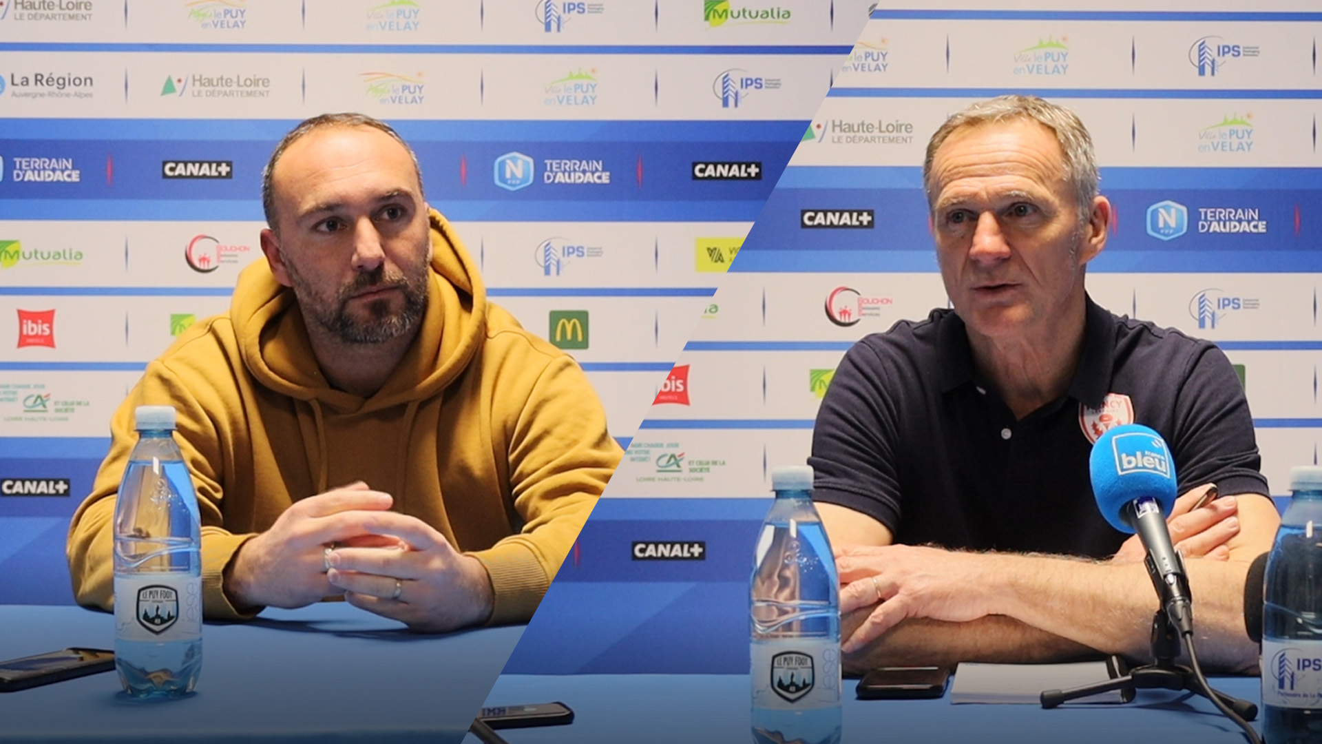 Le Puy Foot 43 et Nancy se sont neutralisés 1-1 sur la pelouse du Stade Massot à l’issue de la 17ème journée de National. Le Puy, réduit à 9 en fin de partie, à du mener une rude bataille pour conserver ce point. Les coachs des deux équipes étaient en conférence de presse quelques minutes après la fin de la rencontre pour débriefer les prestations de leurs équipes.