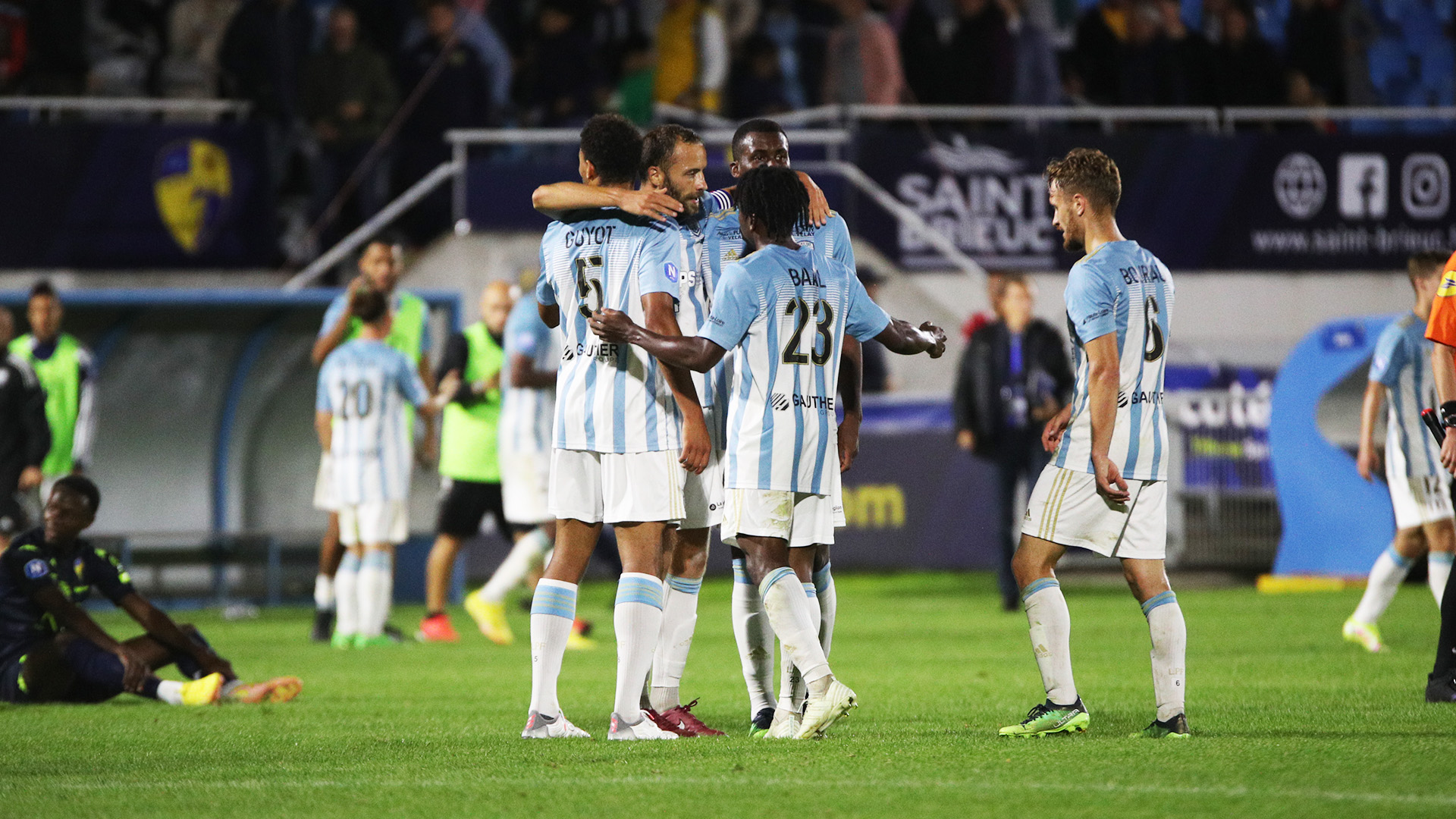 Composition du Stade Briochin : N’Diaye, Le Marer, Simon, Kerbrat, Pierre-Charles, Illien, Benhaim, Beghin, Remars, Tokpa, Sow. Remplaçants : Boudin, Sabry, Yobé, Jean-Pierre, Guirassy. Coach : Didier Santini