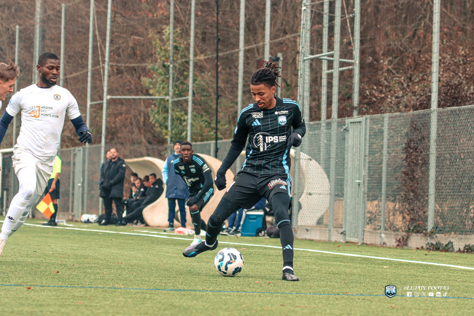 Le match débute fort pour les Ponots, avec plusieurs centres consécutifs, mais sans réelle frappe cadrée. Cependant, dès la 3e minute de jeu, Limonest récupère le ballon. Un joueur part seul vers le but et remporte son duel face à Yanis Maronne. Les Limonois continuent de se montrer dangereux, notamment avec un centre contré par Diarra. La possession est partagée entre les deux équipes. Après un corner en faveur du Puy, Limonest part en contre-attaque et inscrit un deuxième but. Les Ponots réduisent le score à la 30e minute grâce à un centre de Moussa Faty pour Yann Diebold, qui lobe le gardien. Juste après l’engagement, Tom Lebeau récupère le ballon et lance Paul Wade en profondeur. Celui-ci remporte son face-à-face avec le gardien de Limonest et égalise (32’).