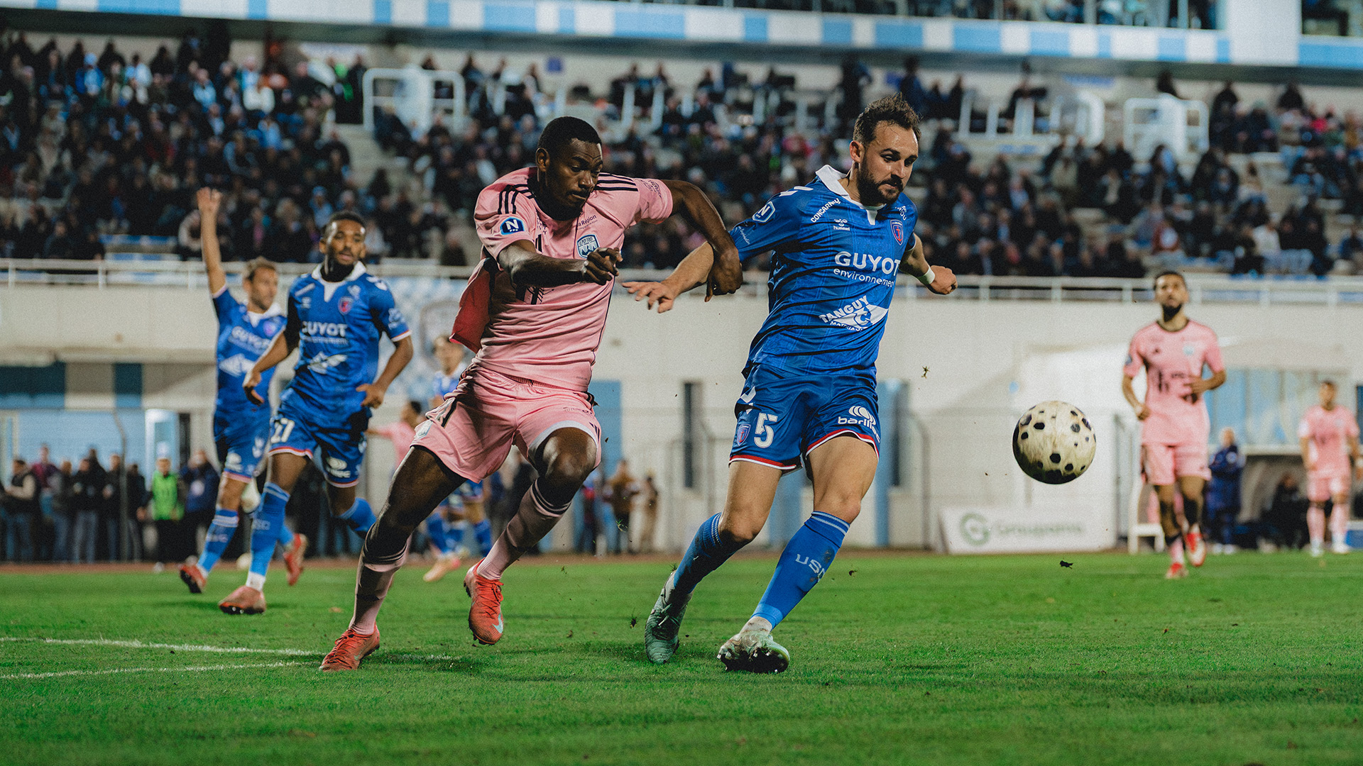 Sur une série d’invincibilité depuis trois rencontres, notamment grâce à leur parcours en Coupe de France, nos Ponots avaient à cœur de prolonger le plaisir et de capitaliser sur cette dynamique positive devant leur public face à l’US Concarneau. Dominateurs dès l’entame, les joueurs de Stéphane Dief se procuraient les plus belles occasions du premier acte. Dès la 5ᵉ minute, Brown Irabor ouvrait le bal en profitant d’un ballon qui lui revenait dans la surface, mais sa frappe s’envolait au-dessus du cadre. Paul Wade tentait ensuite sa chance à deux reprises, d’abord de la tête (8ᵉ), puis sur une belle frappe enroulée (9ᵉ), sans parvenir à tromper la vigilance du portier breton. De son côté, Pierre Patron se montrait décisif face à Brown Irabor (21ᵉ), annihilant une nouvelle occasion ponote. En manque d’efficacité, les Ciel et Blanc allaient malheureusement se faire punir sur la seule véritable opportunité concarnoise : Jordan Tell reprenait de la tête un corner et donnait l’avantage à son équipe (26ᵉ, 0-1). Les visiteurs regagnaient ainsi les vestiaires avec un réalisme implacable.