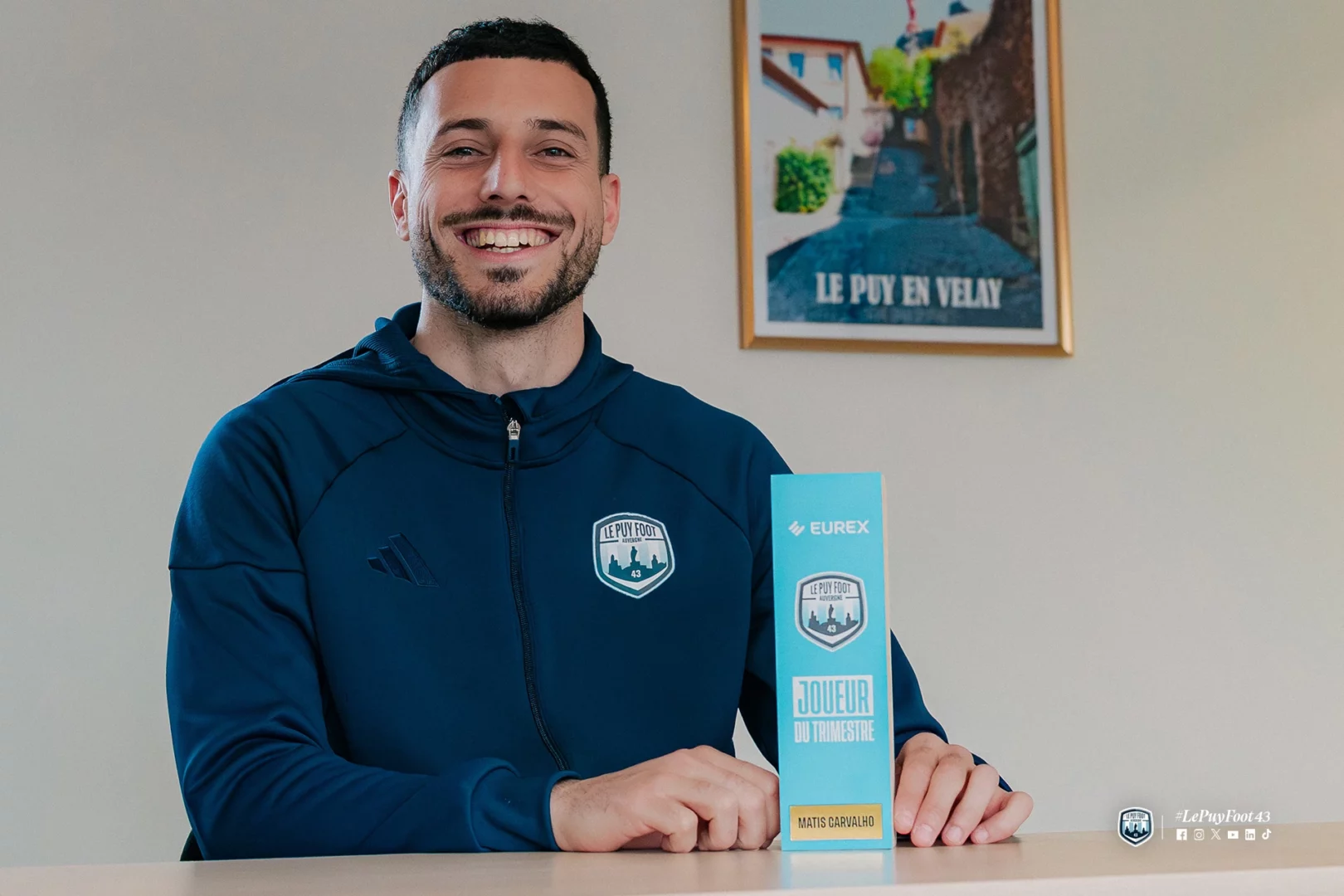 Notre gardien a reçu son trophée ce lundi 23 mars, dans les locaux d’Eurex à Saint-Germain-Laprade, des mains de Thomas Allègre, dirigeant du cabinet d’expertise comptable.