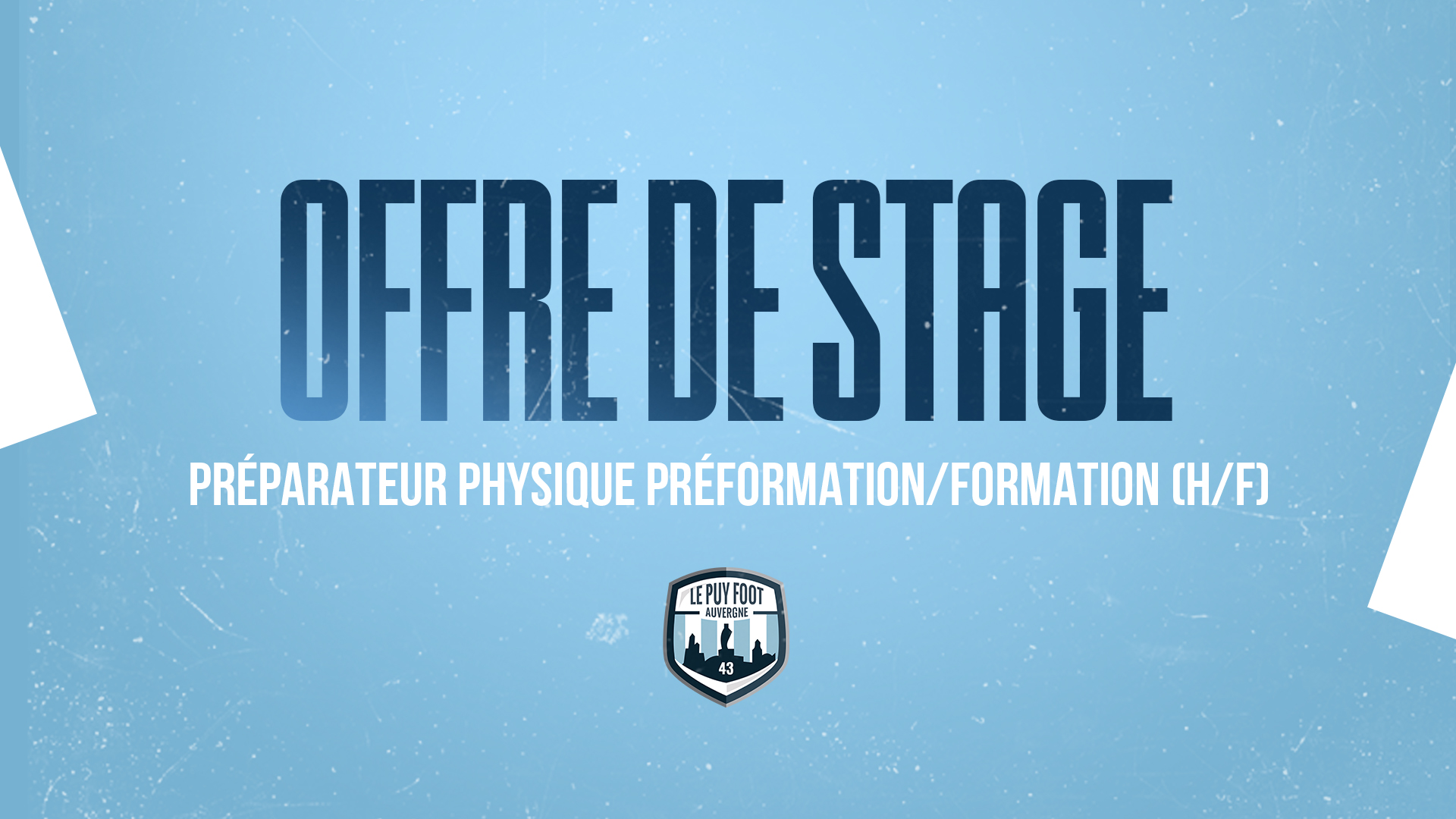 En marge de la saison 2023/2024, Le Puy Foot 43 recherche des stagiaires en préparation athlétique afin de compléter ses staffs des différents pôles masculins (préformation/ formation). Ce stage vous permettra d’intégrer un club structuré, dans un pôle performance et de mettre en pratique vos connaissances théoriques pour bénéficier d’une expérience terrain avec des joueurs d’un niveau régional.