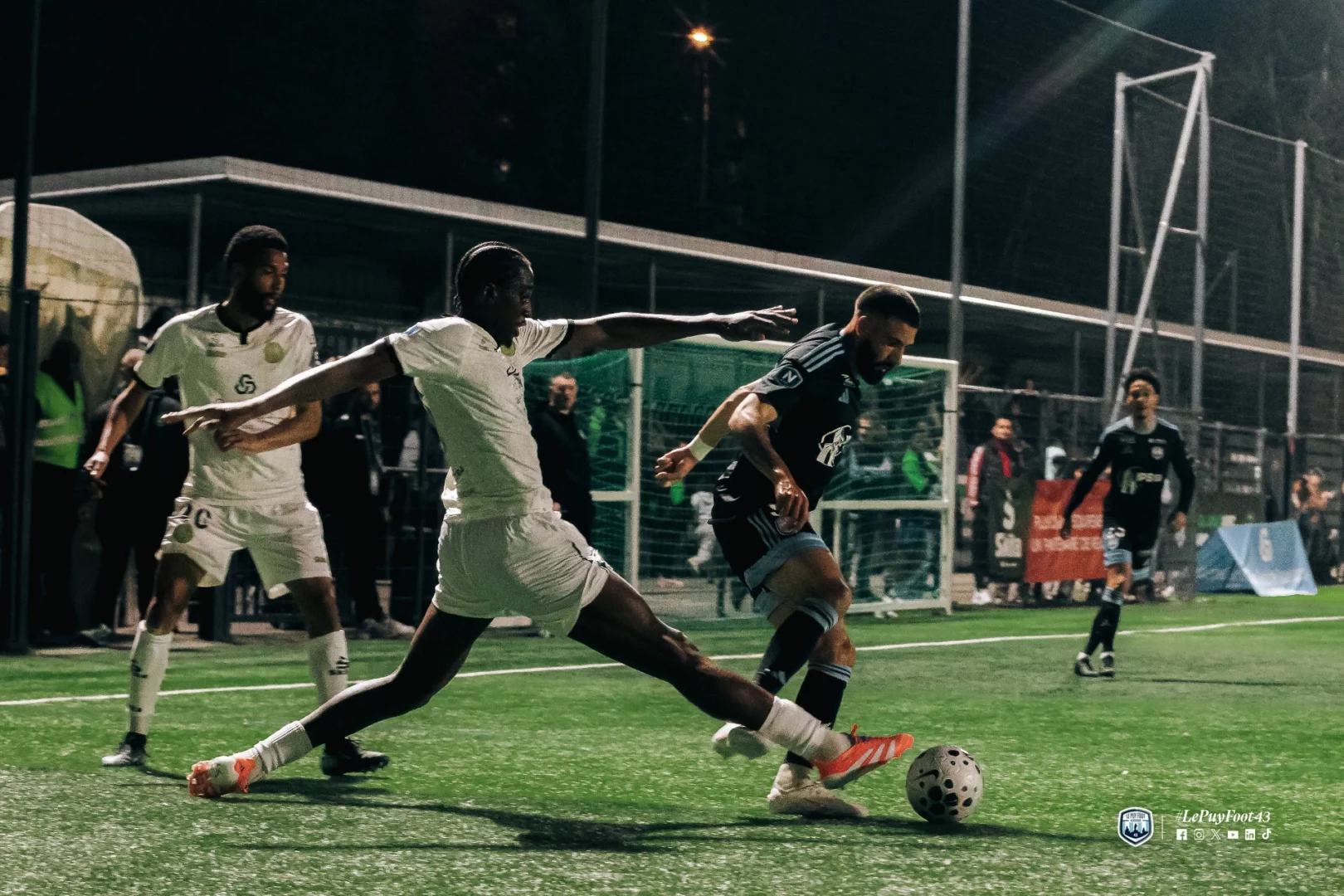 Le début de rencontre voyait les deux formations se neutraliser, avec peut-être un léger avantage pour Le Puy Foot 43. Mais les Parisiens se montraient les premiers dangereux. Dans les buts, Matis Carvalho devait intervenir pour conserver sa cage inviolée (19e) sur une frappe adverse.