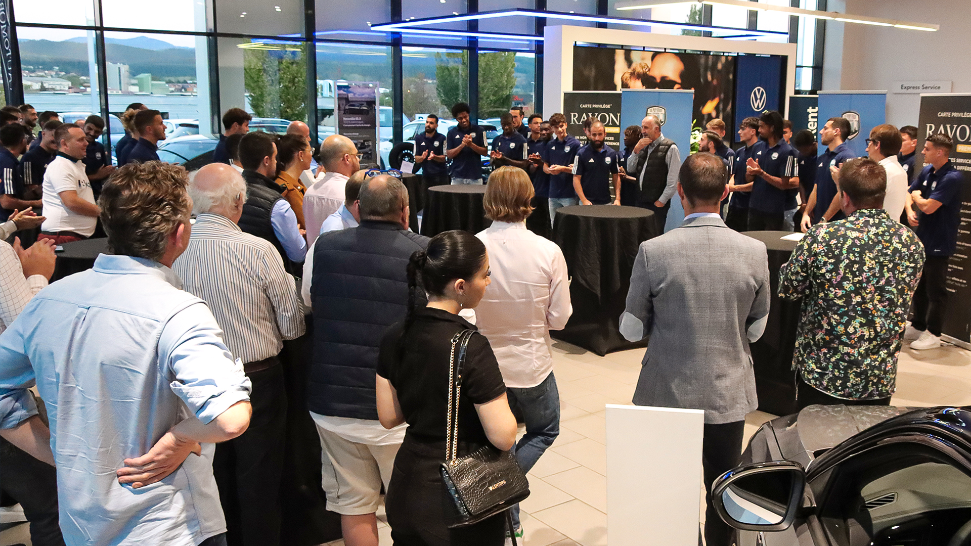 Ce jeudi, la grande concession Volkswagen de Ravon Automobile à Saint-Germain-Laprade s’est transformée en salle de réception à l’occasion de la première soirée des partenaires du Puy Foot 43. L’occasion pour le club de dévoiler son projet 2023/2024 à ses fidèles contributeurs, de faire un point sur le début de saison et au coach Stéphane Dief de présenter son effectif National 2 pour la saison en cours. Dirigeants, joueurs et partenaires ont ensuite profité d’un buffet pour échanger ensemble autour d’un verre.