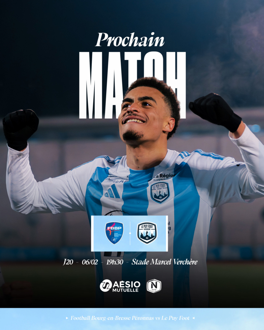 À l’occasion de la 20ème journée de National, Le Puy Foot se déplacera à Bourg-en-Bresse ce vendredi 30 à 19h30.