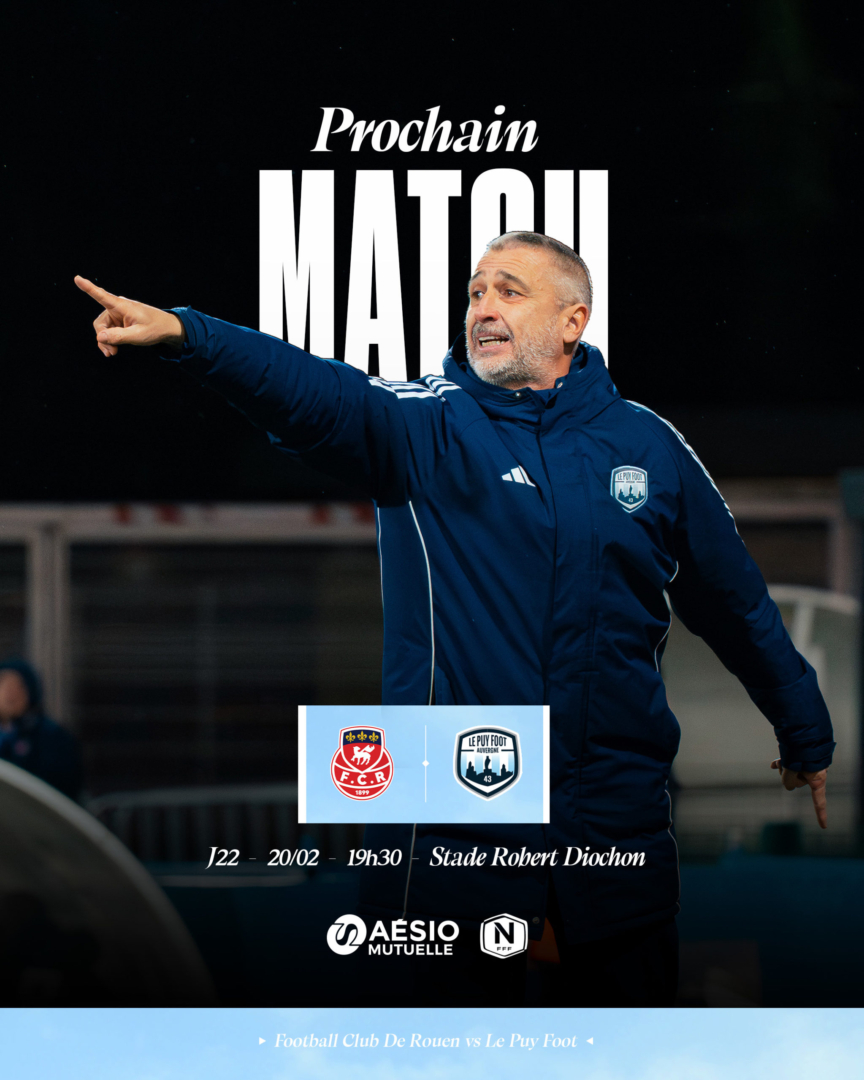 À l’occasion de la 22ème journée de National, Le Puy Foot se déplacera à Rouen ce vendredi 20 février à 19h30.