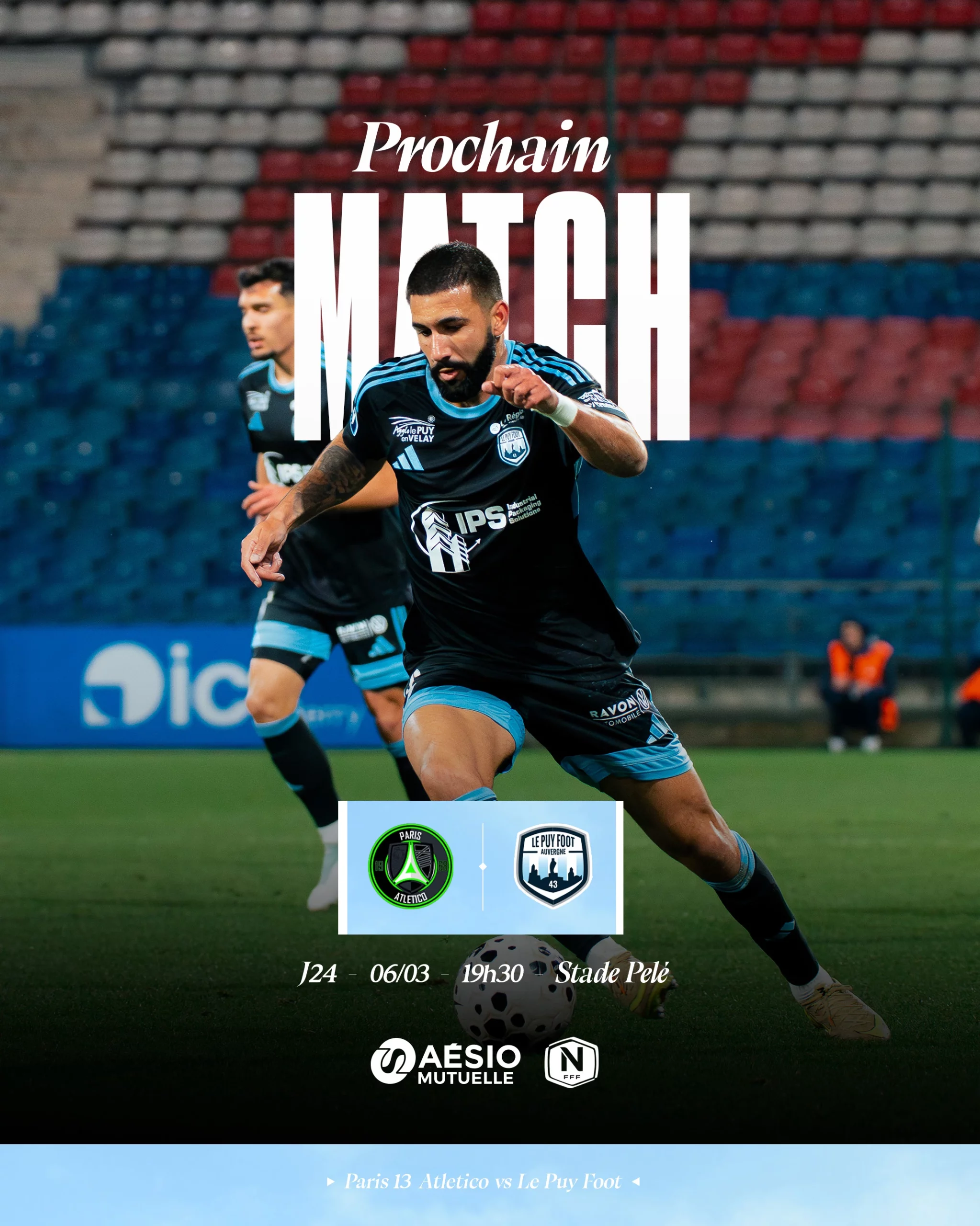 À l’occasion de la 24ème journée de National, Le Puy Foot se déplacera à Paris ce vendredi 06 mars au Stade Pelé à 19h30.